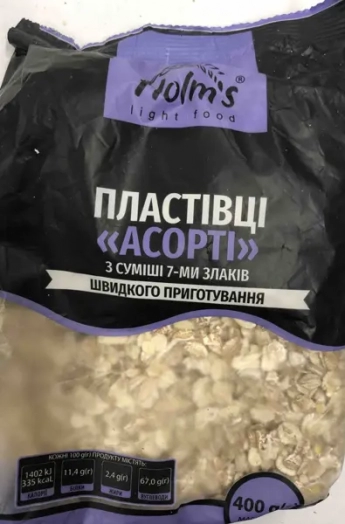 Пластівці HOLM"S LIGHT FOOD Асорті з суміші 7-ми злаків швидкого приготування полімерний пакет 400г