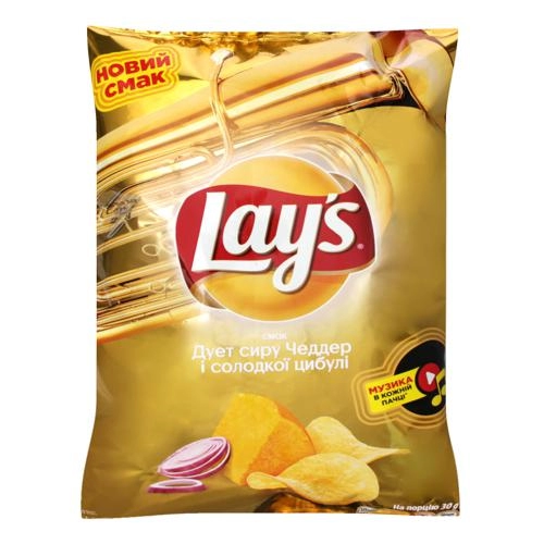 Чіпси LAYS картопляні зі смаком Сиру Чеддер та Цибулі 120г