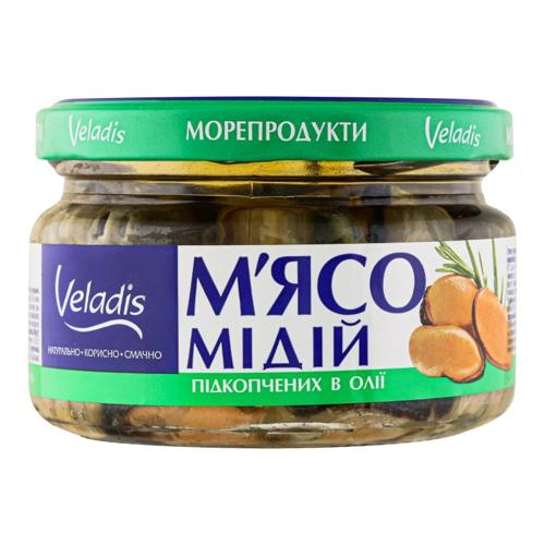 Мідії VELADIS підкопчені в олії скл/б 200г