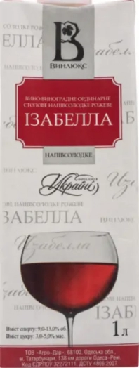Вино ВИНЛЮКС Ізабелла виноградне ординарне столове напівсолодке рожеве 9-13% т/п 1л