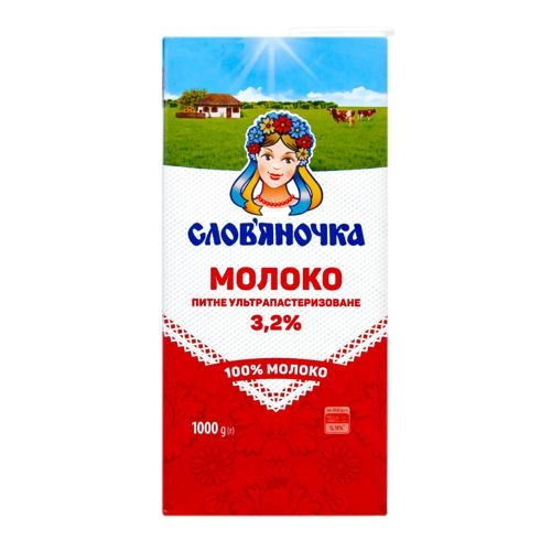 Молоко СЛОВ’ЯНОЧКА питне ультрапастеризоване 3,2% т/пак 1000г