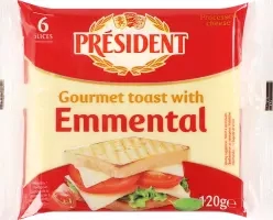 Сир PRESIDENT Emmental плавлений скибковий для тостів 40% 120г