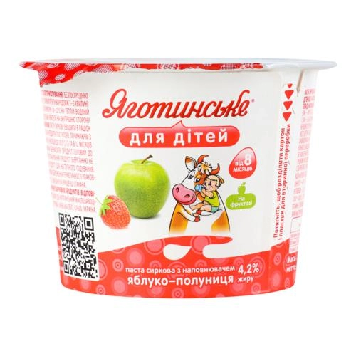 Паста ЯГОТИНСЬКИЙ сиркова Яблоко-полуниця 4,2% стакан 100г