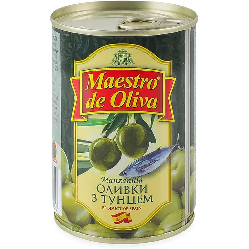 Оливки MAESTRO De OLIVA зелені з Тунцем з/б 90г/280г