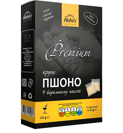 Крупа HOLM"S LIGHT FOOD Пшоно шліфоване вищого гатунку у варильному пакеті 5*80г/400г