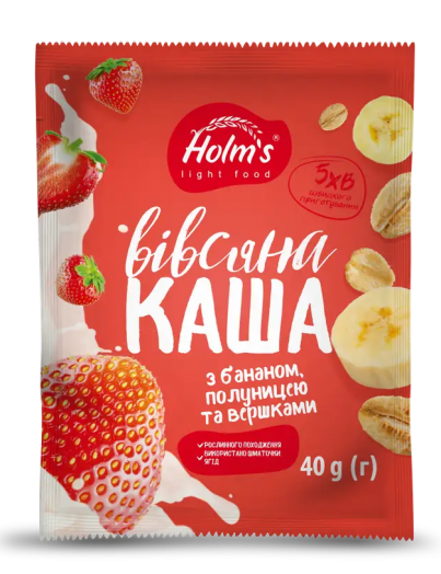 Каша HOLM"S LIGHT FOOD Вівсяна з Бананом, Полуницею та вершками швидкого приготування 40г