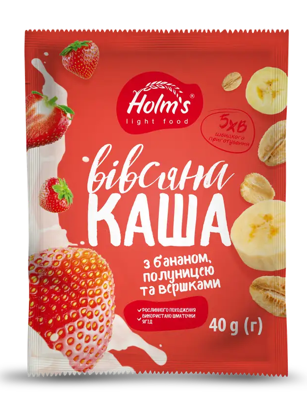 Каша HOLM"S LIGHT FOOD Вівсяна з Бананом, Полуницею та вершками швидкого приготування 40г