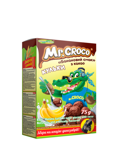 Вироби ЗОЛОТЕ ЗЕРНО Mr.Croco фігурні кульки Мікс з Какао та зі смаком Банану кор 75г