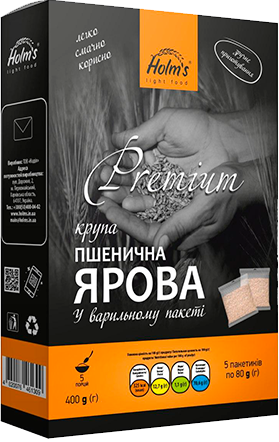 Крупа HOLM"S LIGHT FOOD Пшенична Ярова №2 у варильному пакеті 5*80г/400г