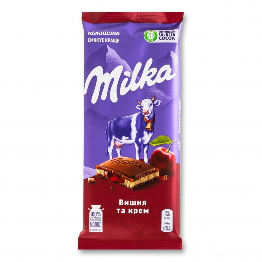 Шоколад MILKA молочний Вишня та Крем 90г