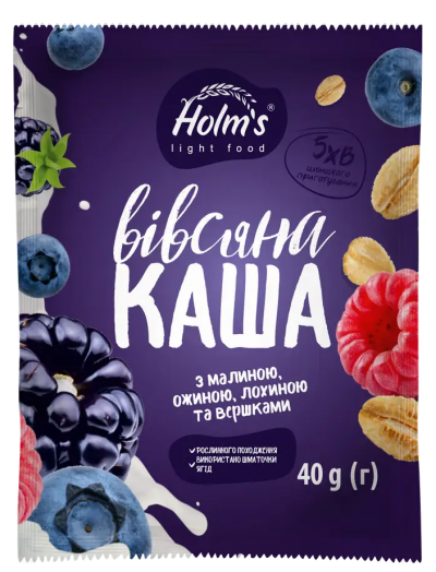 Каша HOLM"S LIGHT FOOD Вівсяна з Малиною, Ожиною, Лохиною та вершками швидкого приготування 40г